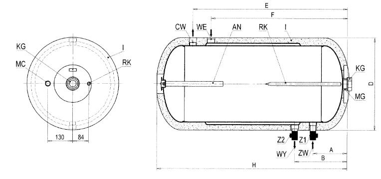 | Sadzīves ūdens tvertnes darbības parametri | Maksimālais darba spiediens un temperatūra pr = 0,6 MPa t r = 80°C | |