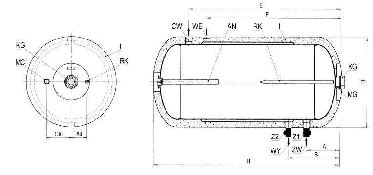 | Sadzīves ūdens tvertnes darbības parametri | Maksimālais darba spiediens un temperatūra pr = 0,6 MPa t r = 80°C | |