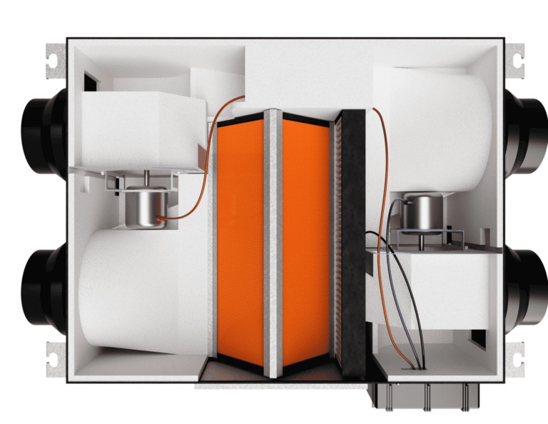 - Šķērsplūsmas siltummainis ar siltuma un mitruma atgūšanu